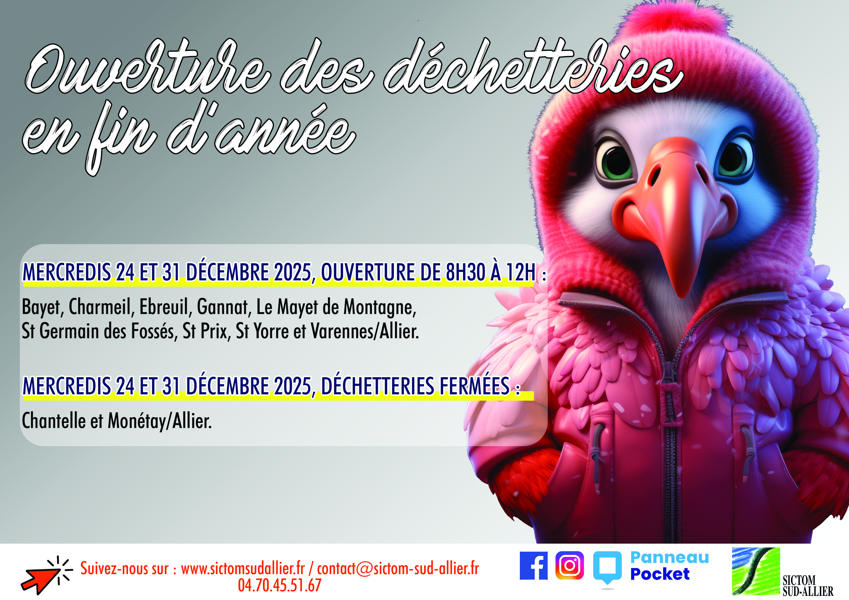 â La dĂ©chetterie de Charmeil sera ouverte de 8 h 30 Ă 12 h, les mercredis 24 et 31 dĂ©cembre 2025.