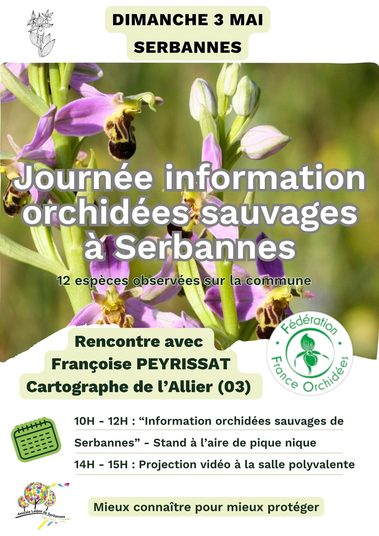 10h-12h : Information Orchidées sauvages de Serbannes - stand a l'aire de pique-nique vers rond-point du bourg.